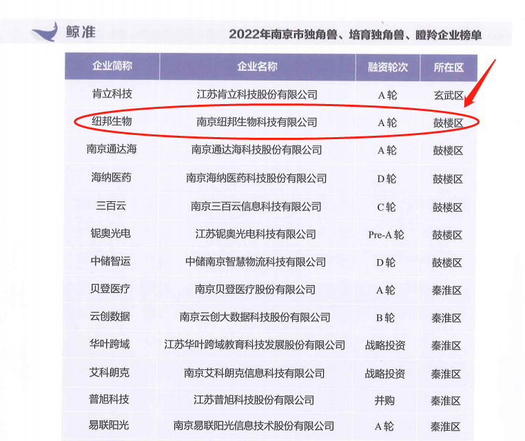 南京紐邦生物科技有限公司,憑借多項核心創新領先技術,成功跻身2022年南京市獨角獸培育企業名單。南京紐邦生物科技有限公司繼2019年入選瞪羚企業榜單之後,2022年又入選南京市“培育獨角獸”企業。